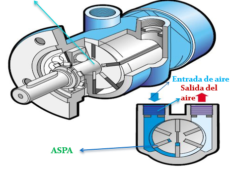 El par se origina cuando el aire a presión actúa sobre las aspas.